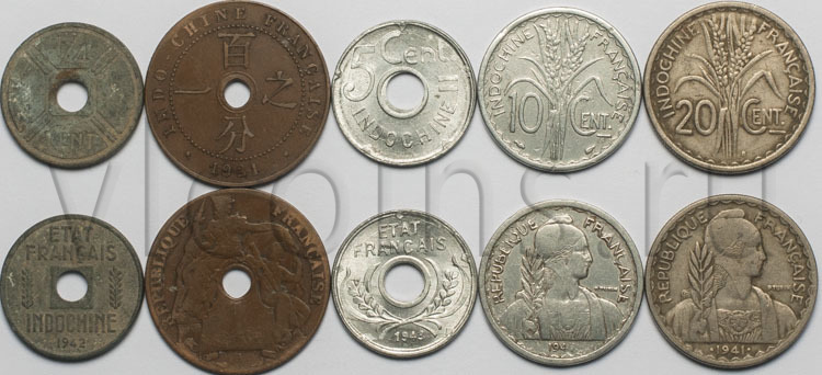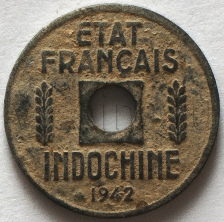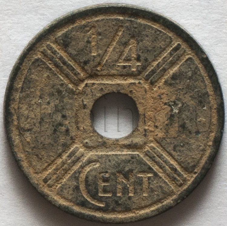 Французский Индокитай 1/4 цента 1942 Цинк (VF-XF)