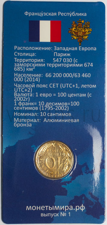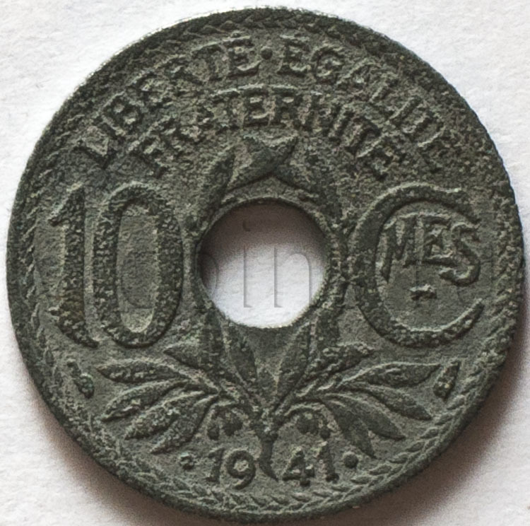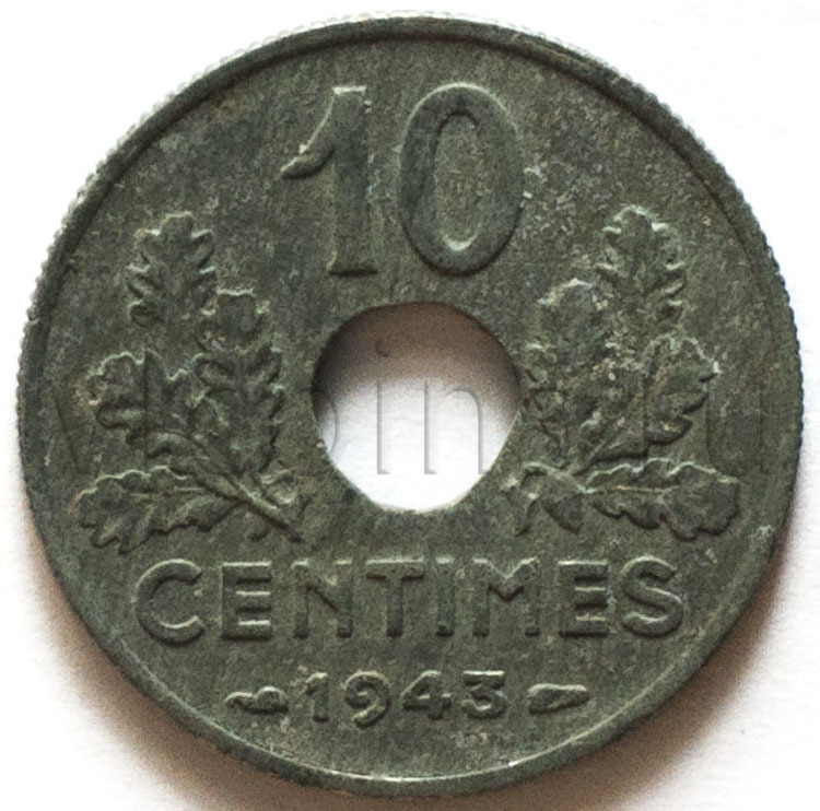 Франция 10 сантим 1941-1943 Режим Виши, цинк (VF-XF)