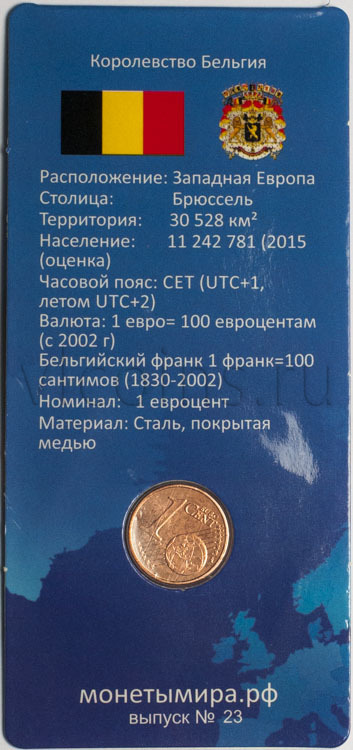 Бельгия 1 сантим 1912 фламандская версия (DER BELGEN) (VF-XF)