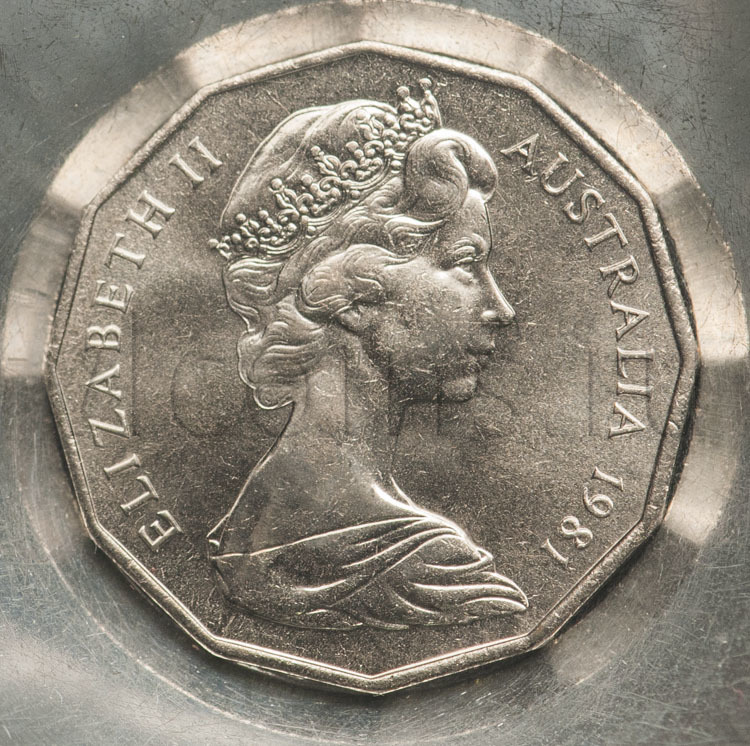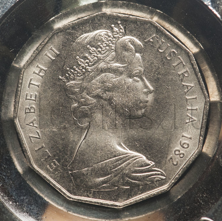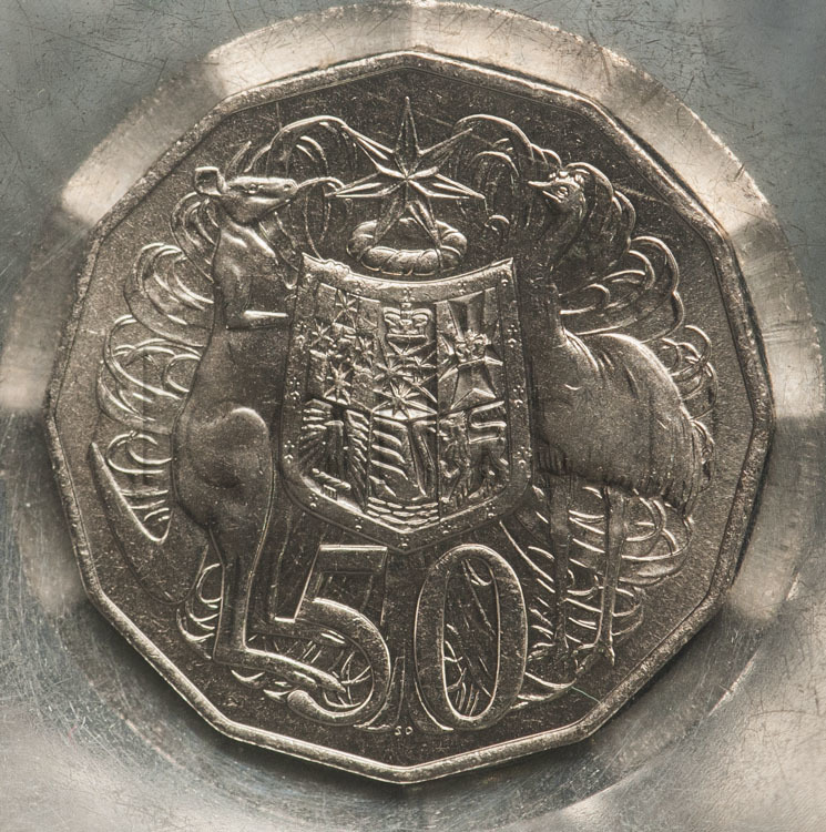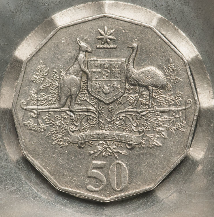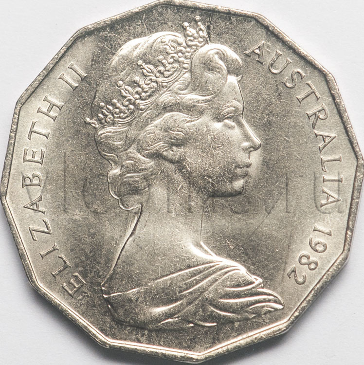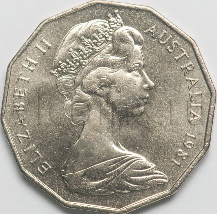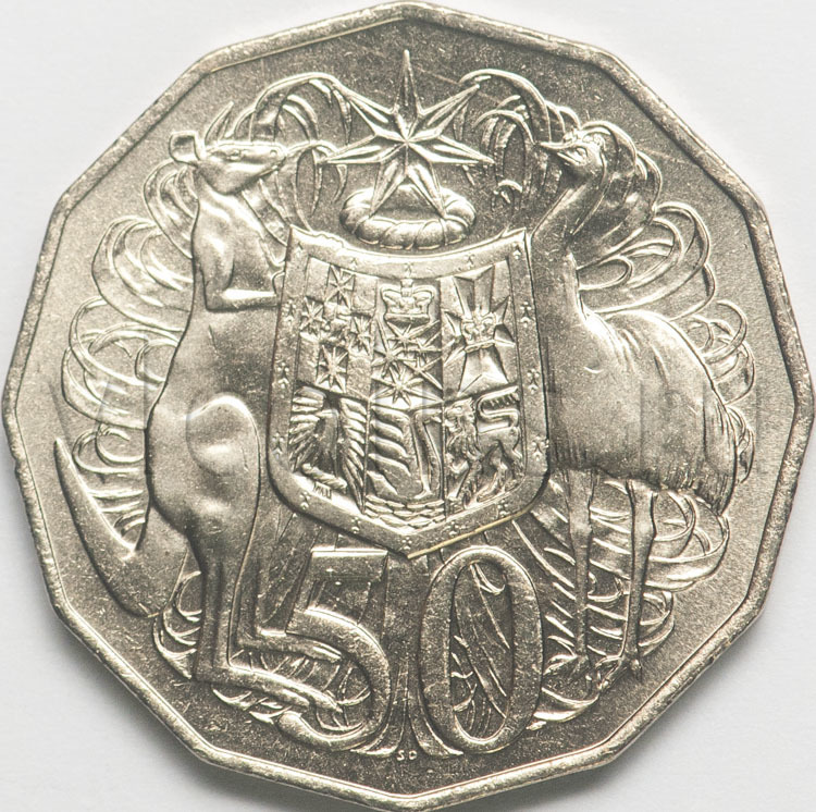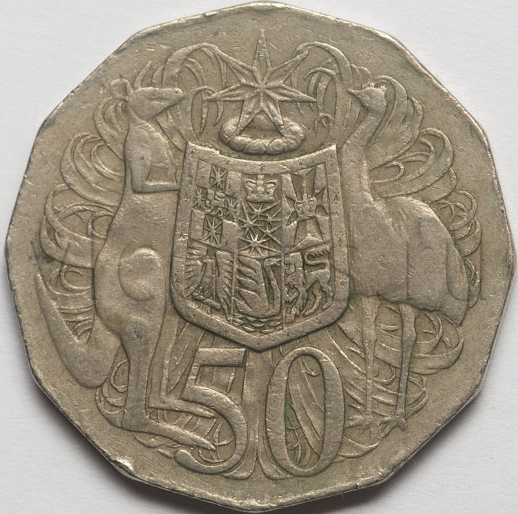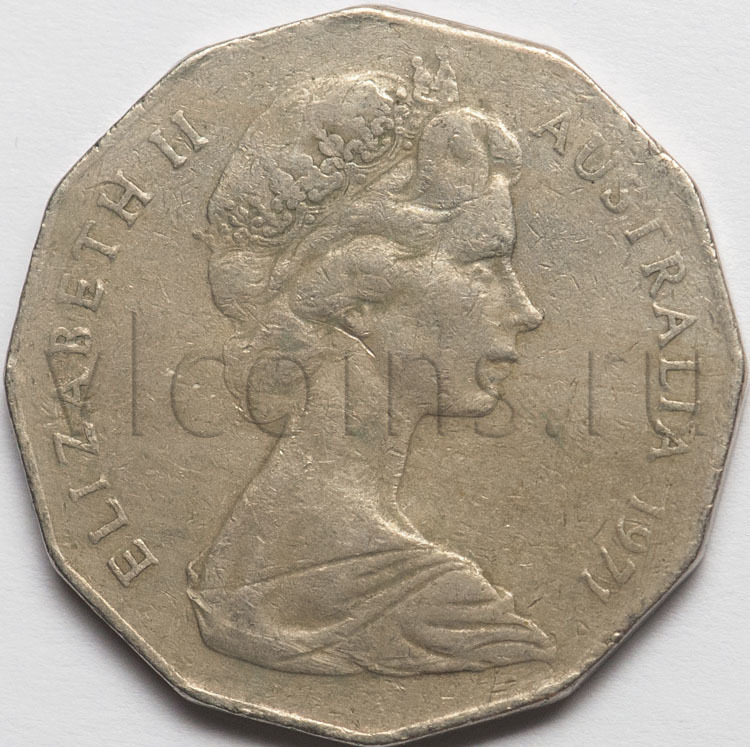 Австралия 50 центов 1971-1984 Герб; молодая королева Елизавета II (VF)
