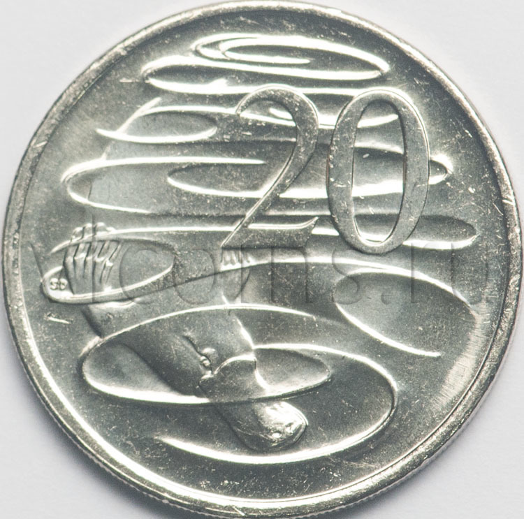 Австралия 20 центов 1999-2010 Утконос; Елизавета II, тип 3 (VF-XF)