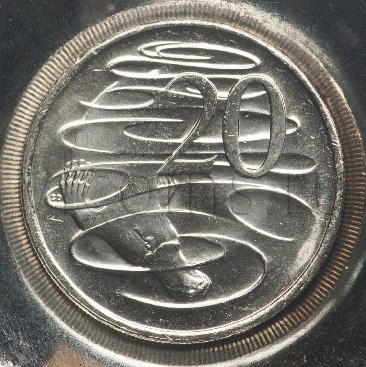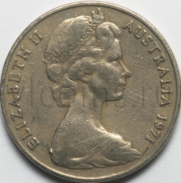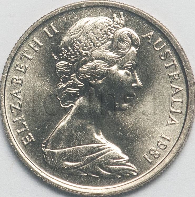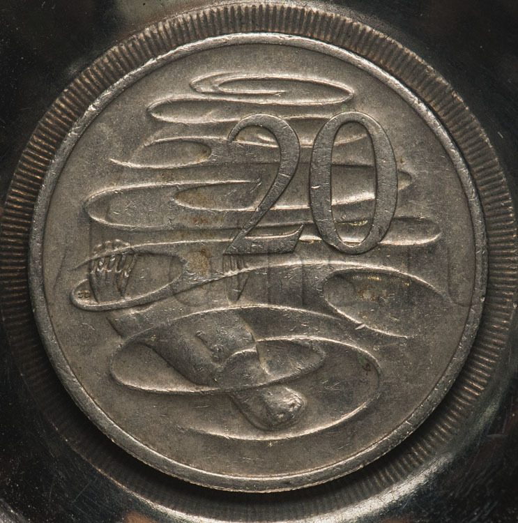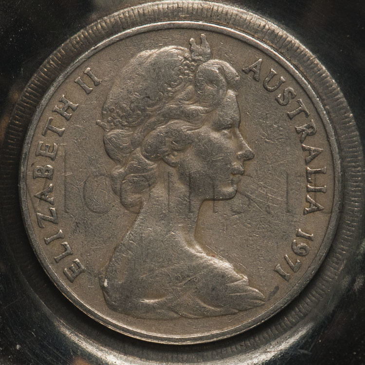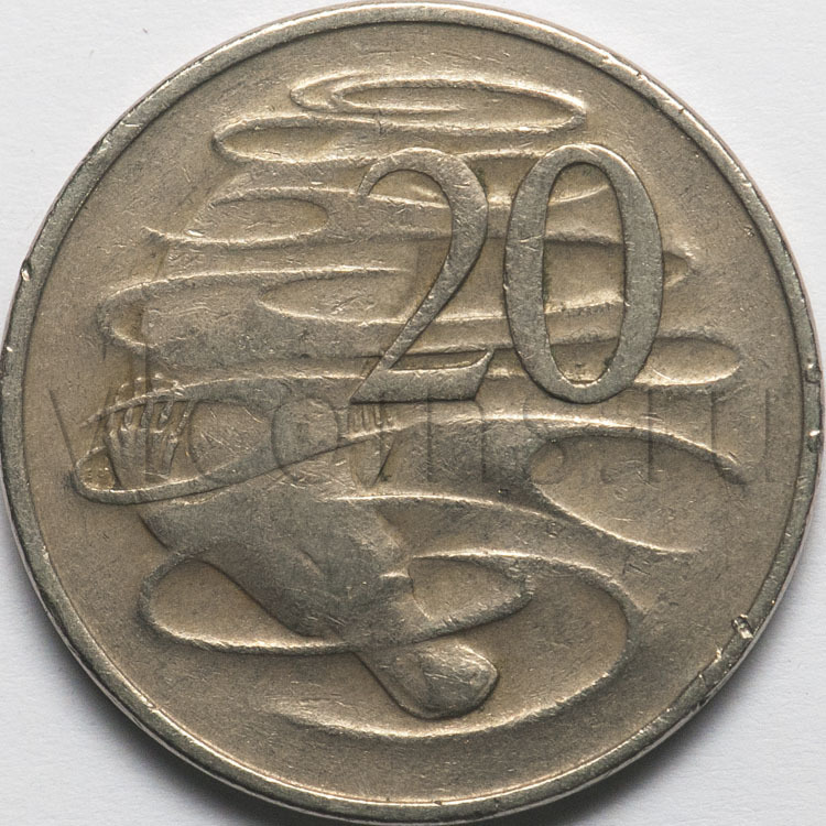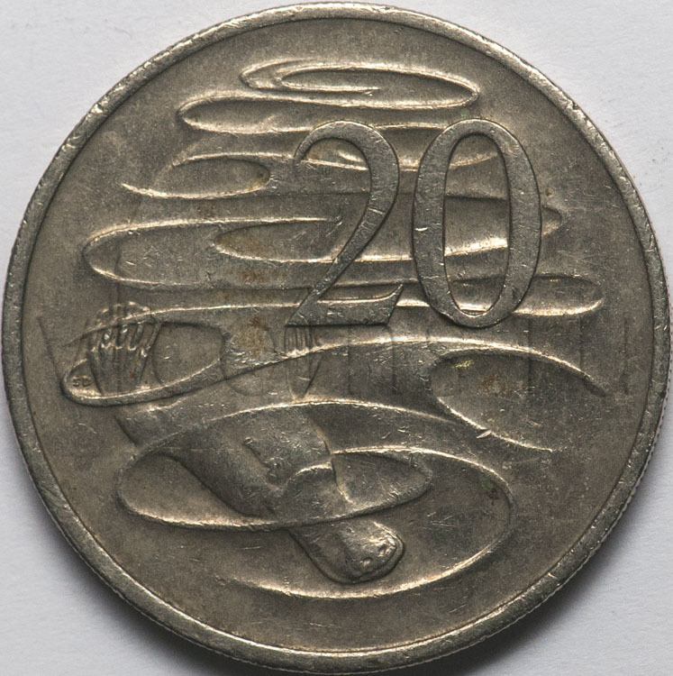 Австралия 20 центов 1966-1981 Утконос; молодая королева Елизавета II (VF-XF)