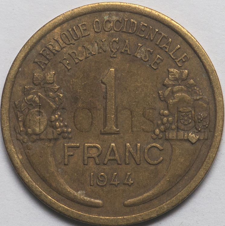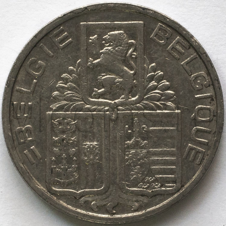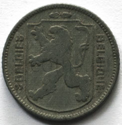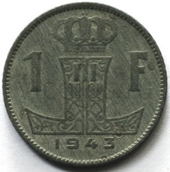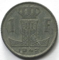 Бельгия 1 франк 1942-1946 (België - Belgique) Цинк (VF-XF)