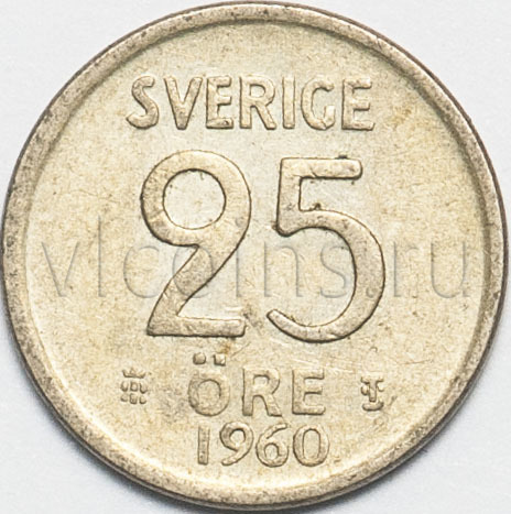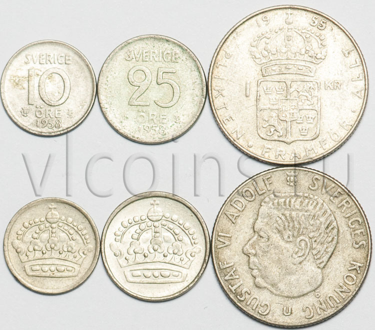 Швеция 3-1952-1968 Король Густав VI; корона (серебро) (VF-XF)