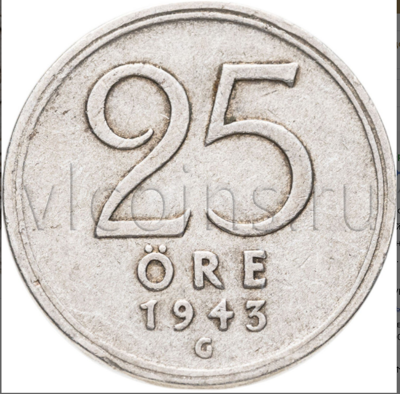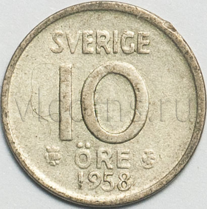 Швеция 10 эре 1942-1950 Корона (серебро VF-XF)