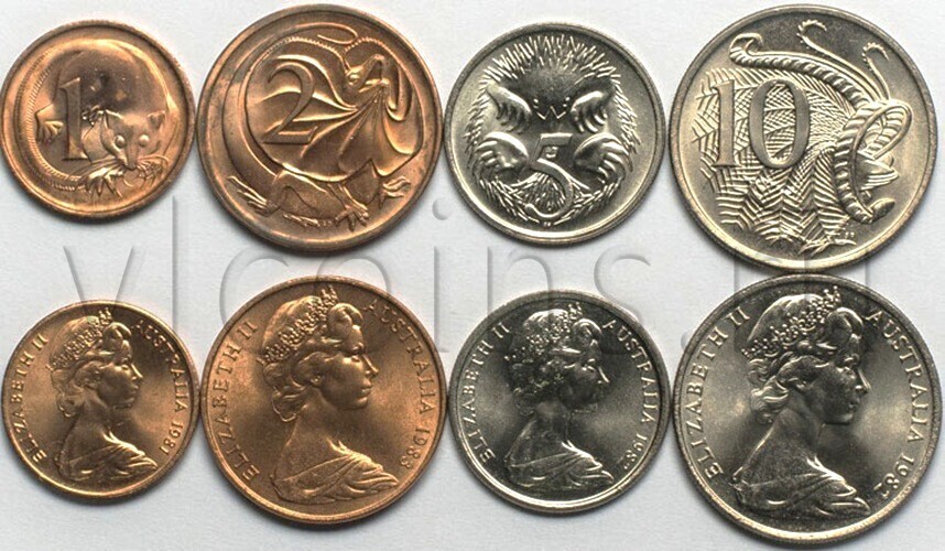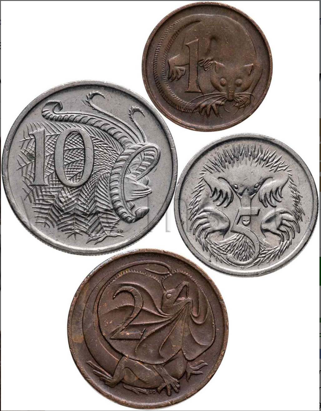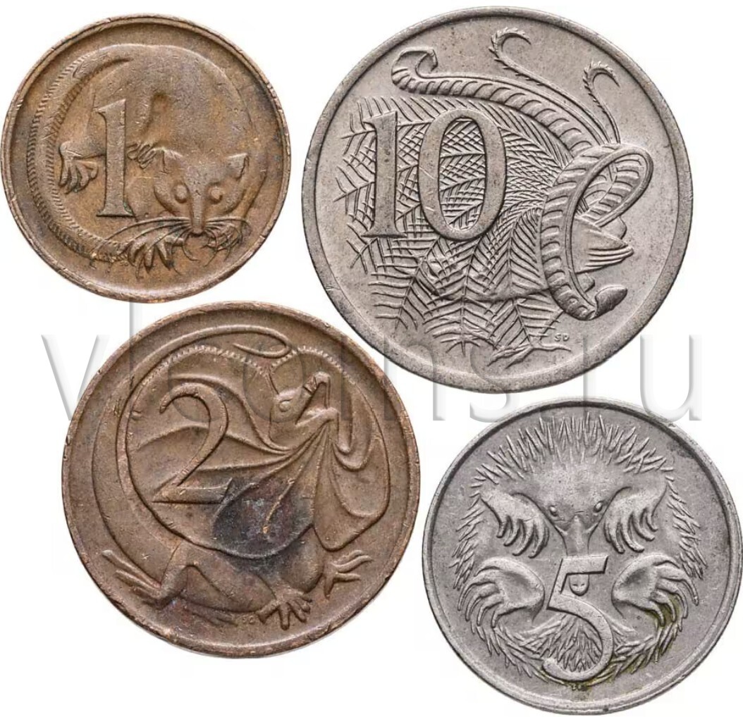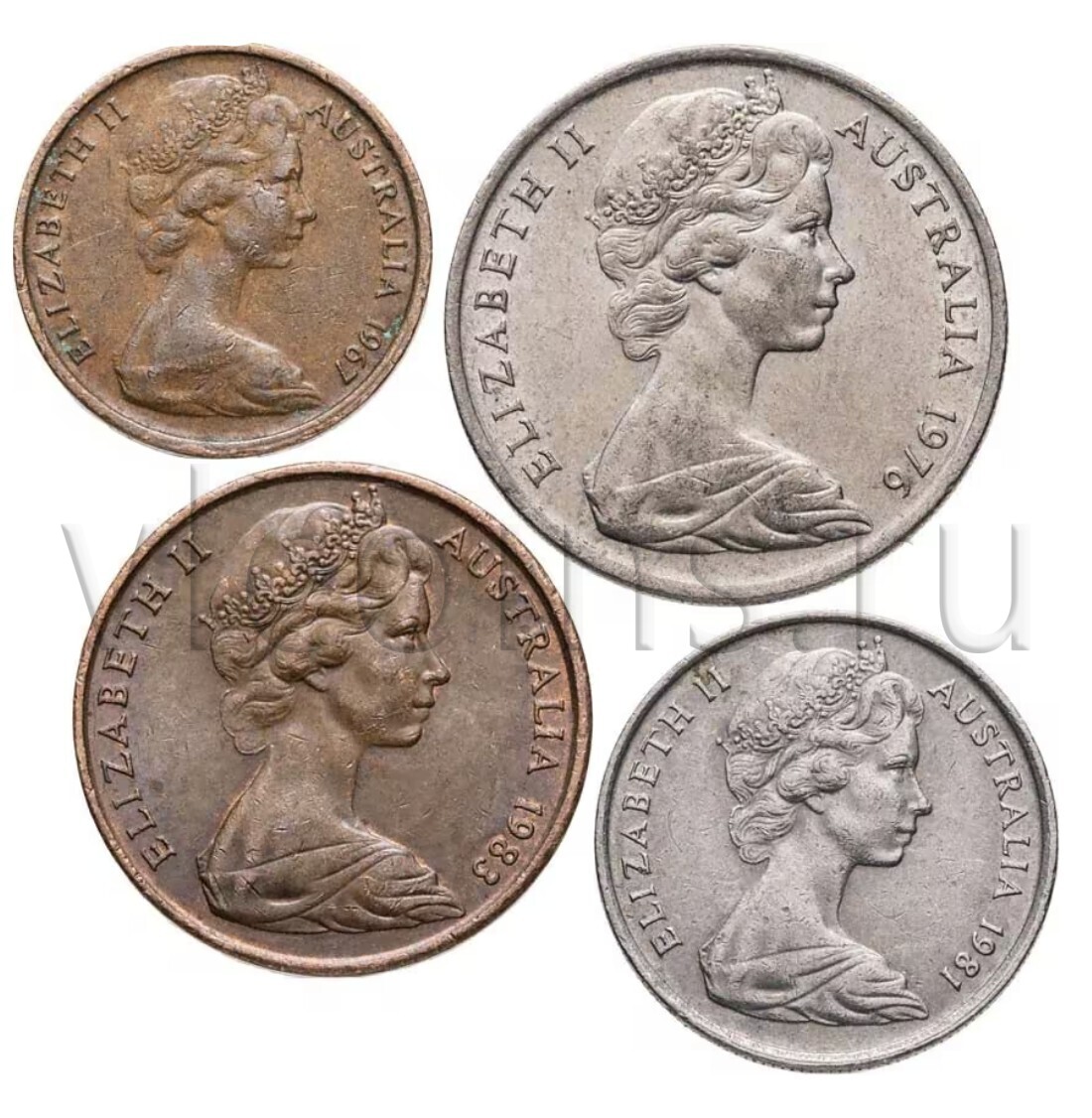 Австралия 4-1966-1984 Фауна; молодая королева Елизавета II (VF-XF)