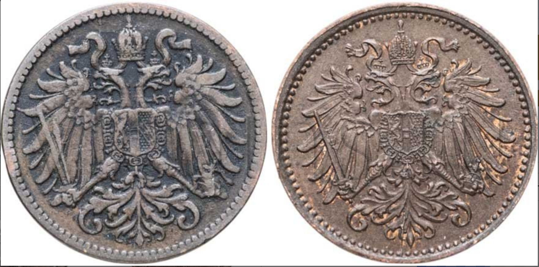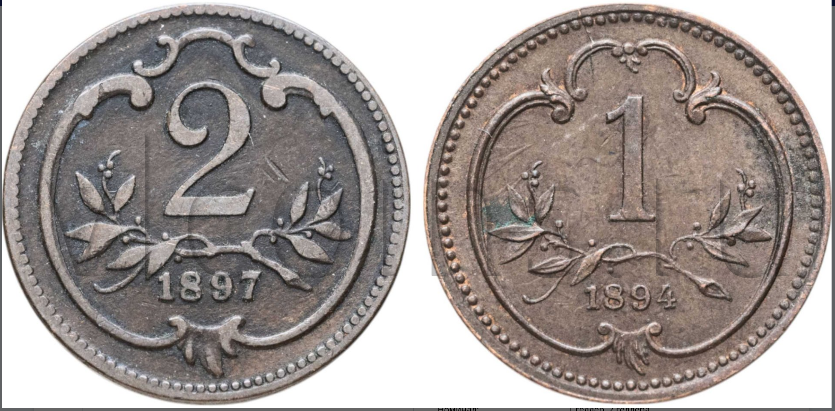 Австро-Венгрия 2 геллера 1892-1915 (VF-XF)