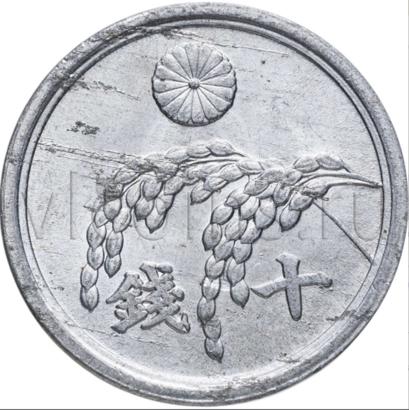 Япония 10 сен 1940-1943 Хирохито; хризантема (VF-XF)