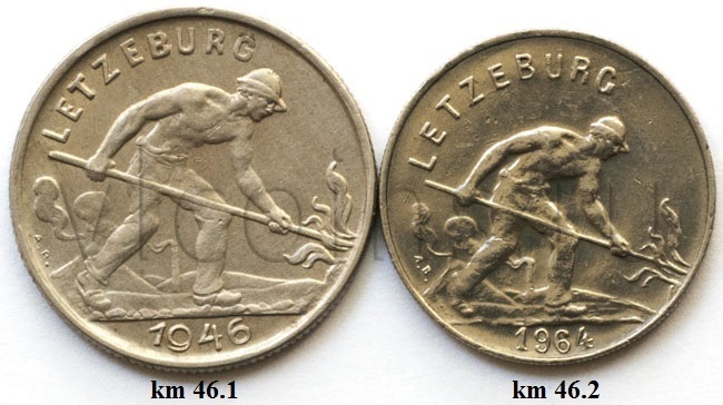 Люксембург 1 франк 1952-1964 Фермер km46.2 (VF-XF)