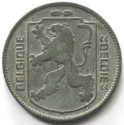 Бельгия 1 франк 1942-1946 (Belgique - België) Цинк (VF-XF)