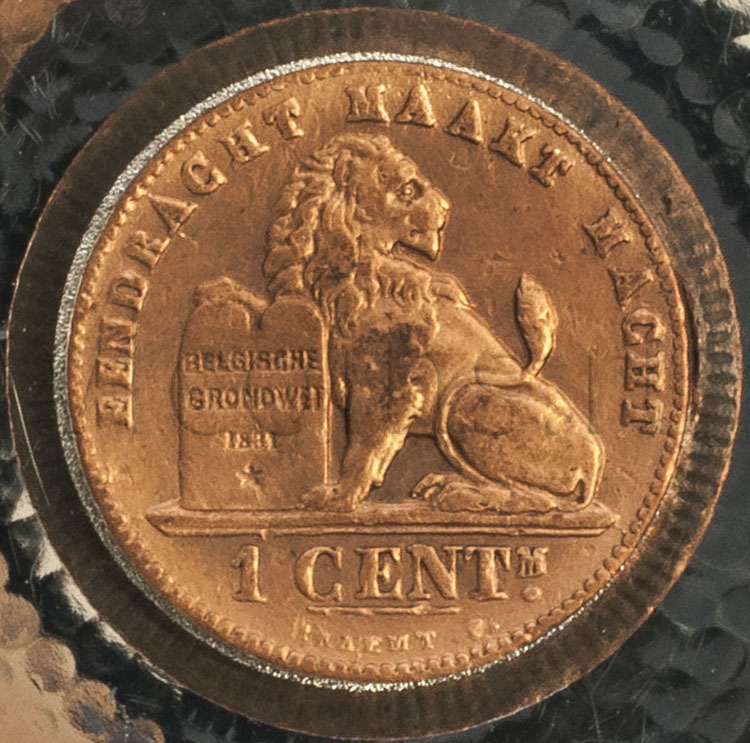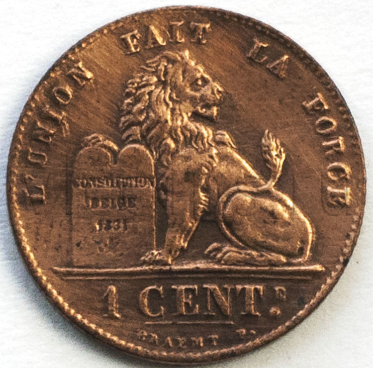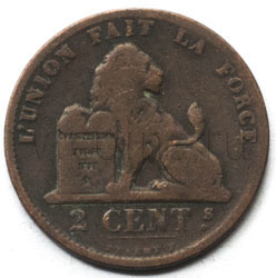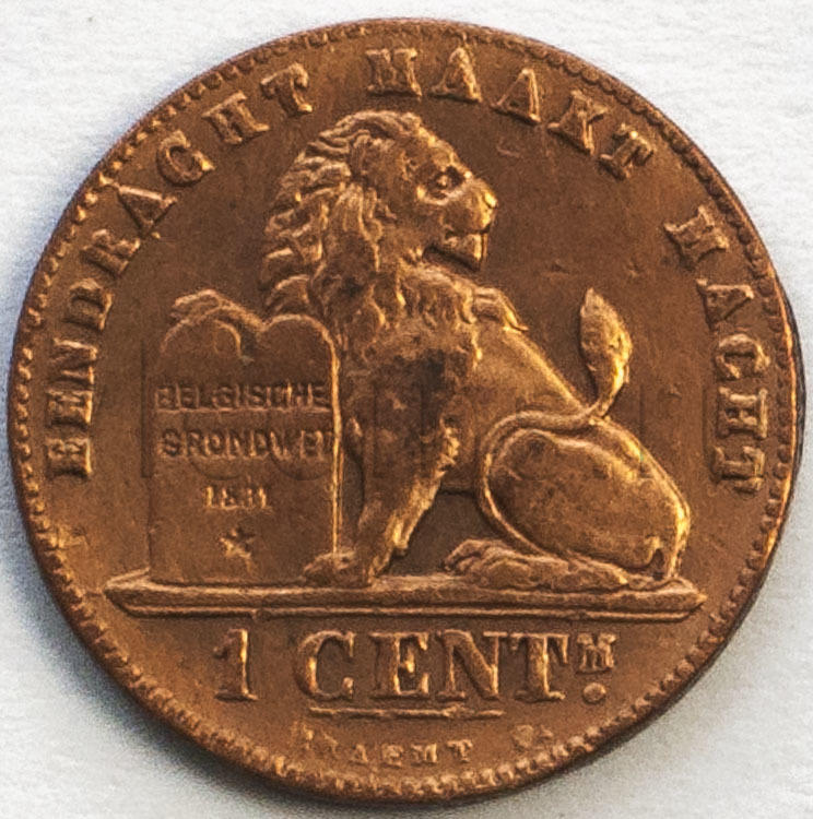 Бельгия 1 сантим 1882-1907 фламандская версия (DER BELGEN) (VF-XF)