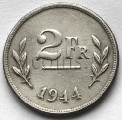 Бельгия 2 франка 1944 французская версия (Belgique) (XF-AU)